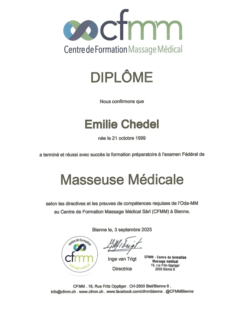2026 en route pour le Brevet Fédéral de masseuse médicale